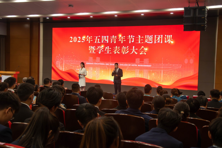 515日下午,青島酒店管理職院2025年五四青年節主題團課暨學生表彰大會在學術報告廳舉辦。