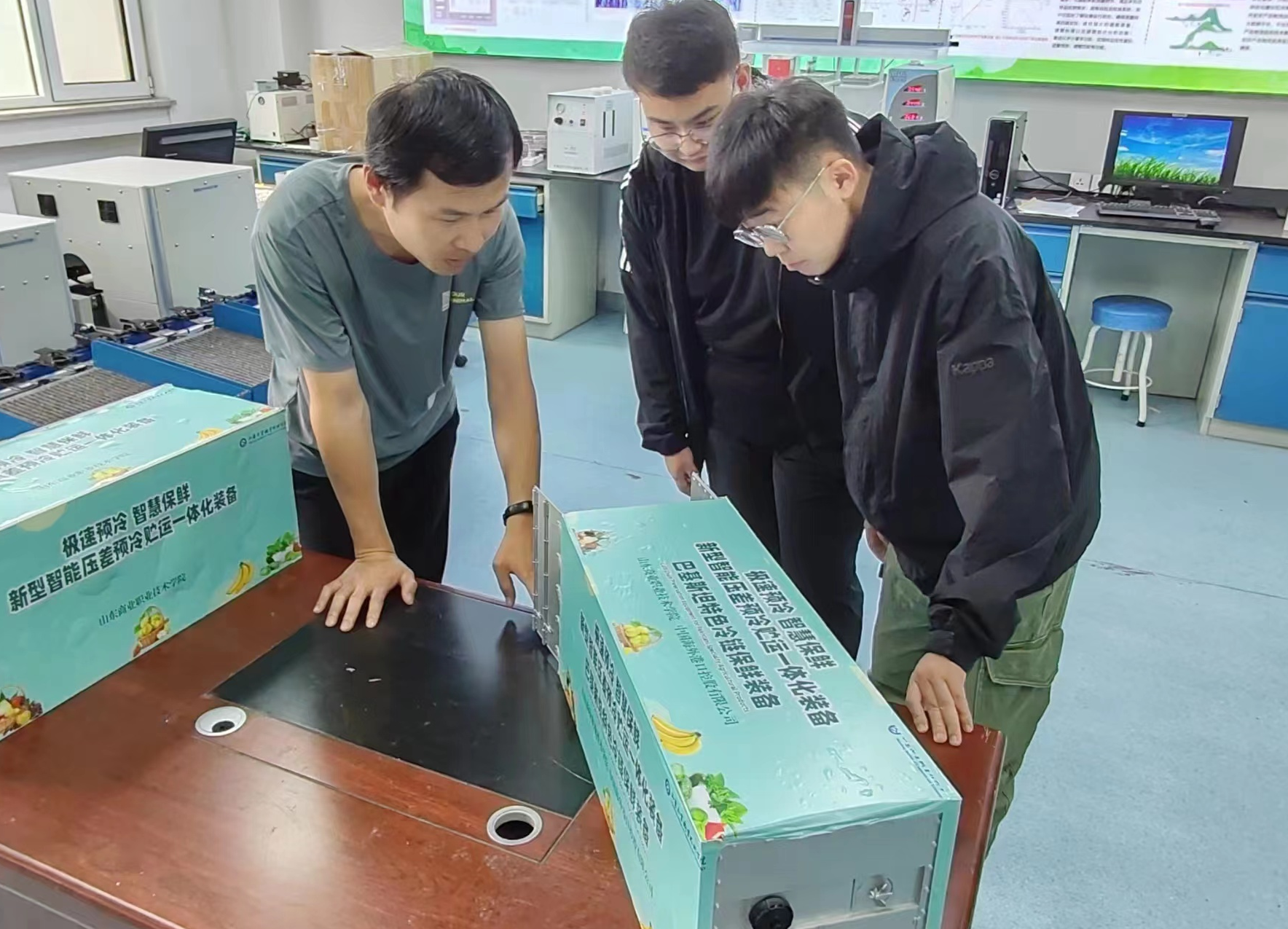 其中,由山東省農(nóng)產(chǎn)品貯運保鮮技術重點實驗室推薦,郭風軍、陳東杰、張長峰指導的“極速預冷 智慧保鮮—新型智能殺菌型壓差預冷貯運一體化裝備”項目從2.7萬件作品中脫穎而出,獲省級特等獎,實現(xiàn)學校該項賽事特等獎零的突破。