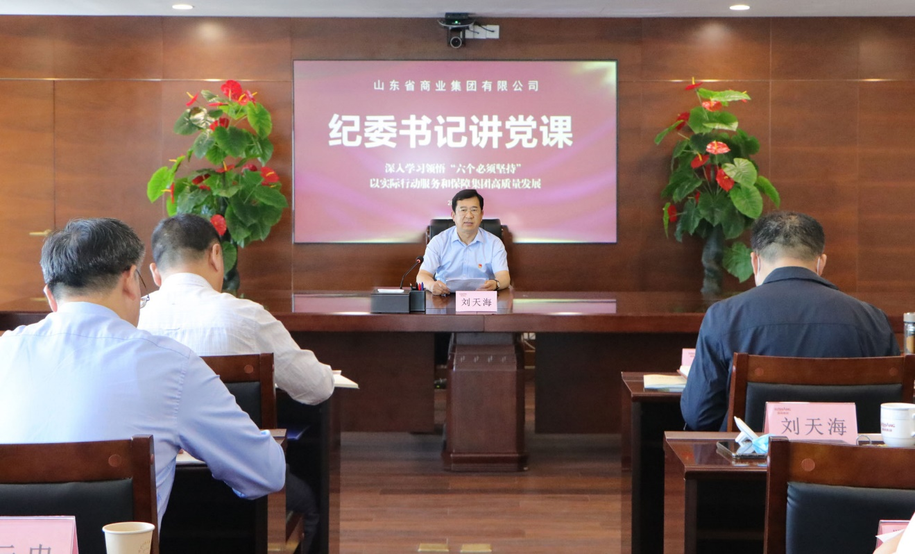 為扎實(shí)開(kāi)展學(xué)習(xí)貫徹習(xí)近平新時(shí)代中國(guó)特色社會(huì)主義思想主題教育,6月5日,魯商集團(tuán)黨委常委、紀(jì)委書記、省監(jiān)委駐集團(tuán)監(jiān)察專員劉天海圍繞“深入學(xué)習(xí)領(lǐng)悟‘六個(gè)必須堅(jiān)持’ 以實(shí)際行動(dòng)服務(wù)和保障集團(tuán)高質(zhì)量發(fā)展”為集團(tuán)黨員干部講專題黨課。集團(tuán)黨委書記、董事長(zhǎng)王緒超,黨委副書記、董事劉守亮,黨委副書記、董事、副總經(jīng)理朱華建,黨委常委、董事、總審計(jì)師、工會(huì)主席劉德華參加,黨委常委、董事、組織人力資源部部長(zhǎng)李林主持。