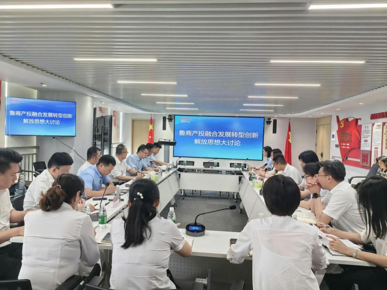 7月19日,魯商產投組織開展融合發展轉型創新解放思想大討論活動,公司黨委書記、董事長葛健,黨委副書記、總經理李學軍出席會議。