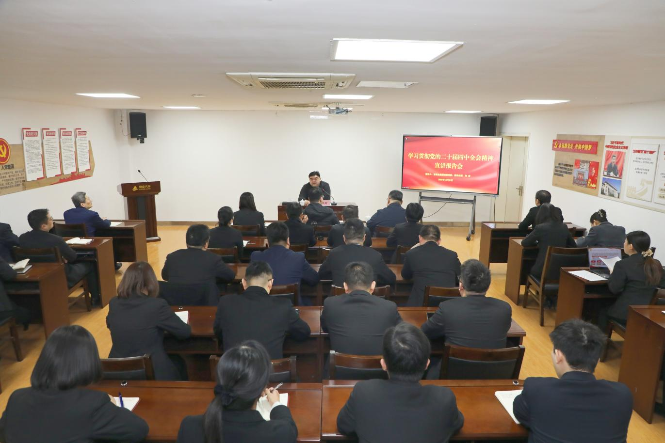 會上,劉巖從黨的二十屆四中全會精神的重要意義、“十五五”發展的歷史方位與戰略部署、經濟社會發展的指導思想與主要目標對全會精神進行了全面宣講,并結合集團“十五五”發展規劃和戰略部署,聚焦銀座汽車主責主業,就如何貫徹落實全會精神、服務集團高質量發展大局進行了深入闡釋和指導。會議指出,黨的二十屆四中全會是在我國即將進入基本實現社會主義現代化夯實基礎、全面發力的關鍵時期召開的一次十分重要的會議,審議通過的《中共中央關于制定國民經濟和社會發展第十五個五年規劃的建議》是指導未來五年發展的綱領性文件。會議要求,學習好貫徹好黨的二十屆四中全會精神是當前和今后一個時期的重大政治任務。要深刻領會、堅決貫徹黨中央決策部署,自覺對標對表省委、省國資委及集團戰略規劃,緊抓“十五五”時期企業轉型升級、塑造優勢的關鍵窗口期,著力深化“五大創新”,奮力實現“五個跨越”,堅決瘦身降負債、牢牢鞏固主業、向新向外培育新動能、持續向管理要效益、守住安全底線,深入推動集團“六高發展理念”落實落地。會議強調,各級黨組織必須扛起主責,始終把學習貫徹黨的二十屆四中全會精神,與深刻領會習近平新時代中國特色社會主義思想,特別是習近平總書記對山東對國資國企工作的重要指示要求結合起來,與貫徹中央經濟工作會議精神、落實省委十二屆十次全會精神貫通起來,在“理解”上下功夫,在“把握”上做文章,在“落實”上見成效,把學習成果轉化為具體的目標任務、工作措施,層層分解責任,形成“學習—謀劃—部署—執行—督辦—提升”管理閉環。銀座汽車領導班子成員,各黨支部書記,直管單位負責人及總部全體員工參會。