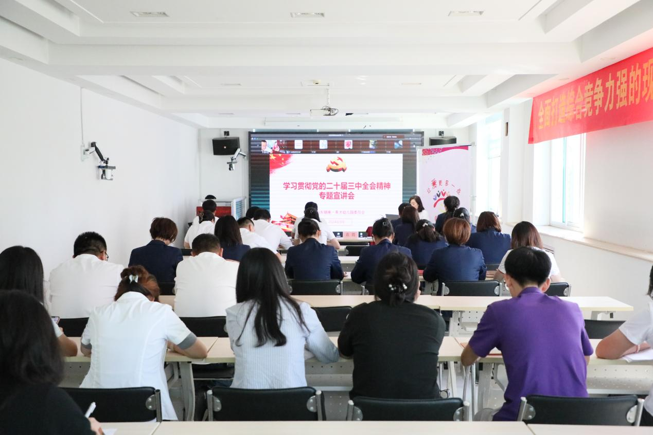 會議圍繞習近平總書記在黨的二十屆三中全會的重要講話和全會通過的《中共中央關于進一步全面深化改革、推進中國式現代化的決定》,從深入學習領會習近平總書記在黨的二十屆三中全會上的重要講話精神、全面準確理解《決定》提出的進一步全面深化改革重大舉措、全力以赴抓好全會精神貫徹落實等三個方面進行了全面、深入、系統的宣講和闡釋。宣講報告闡釋了進一步全面深化改革的精神要義,結合工作實際對未來發展規劃提出了更高的要求,對銀座幼教全體黨員干部精確把握黨的二十屆三中全會精神具有重要作用。
