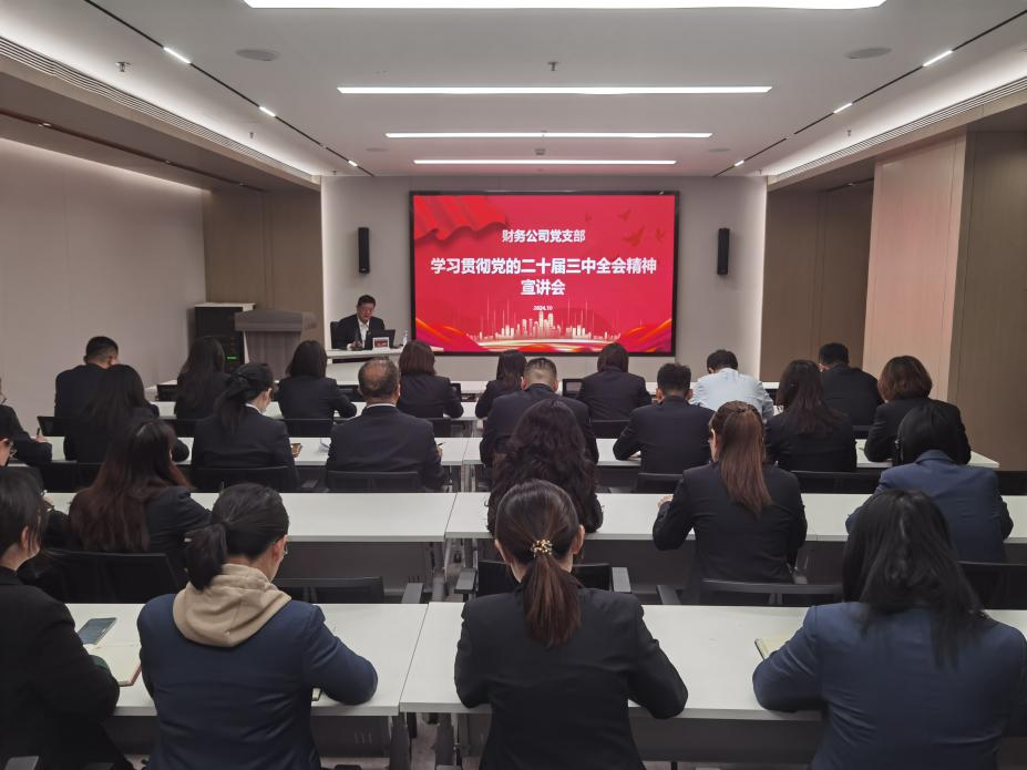 為深入學(xué)習(xí)貫徹黨的二十屆三中全會(huì)精神,引導(dǎo)全體黨員干部解放思想、奮發(fā)進(jìn)取,全面推動(dòng)各項(xiàng)任務(wù)落地落實(shí),10月21日,財(cái)務(wù)公司舉辦學(xué)習(xí)貫徹黨的二十屆三中全會(huì)精神宣講會(huì),黨支部書記徐峰作專題宣講。
